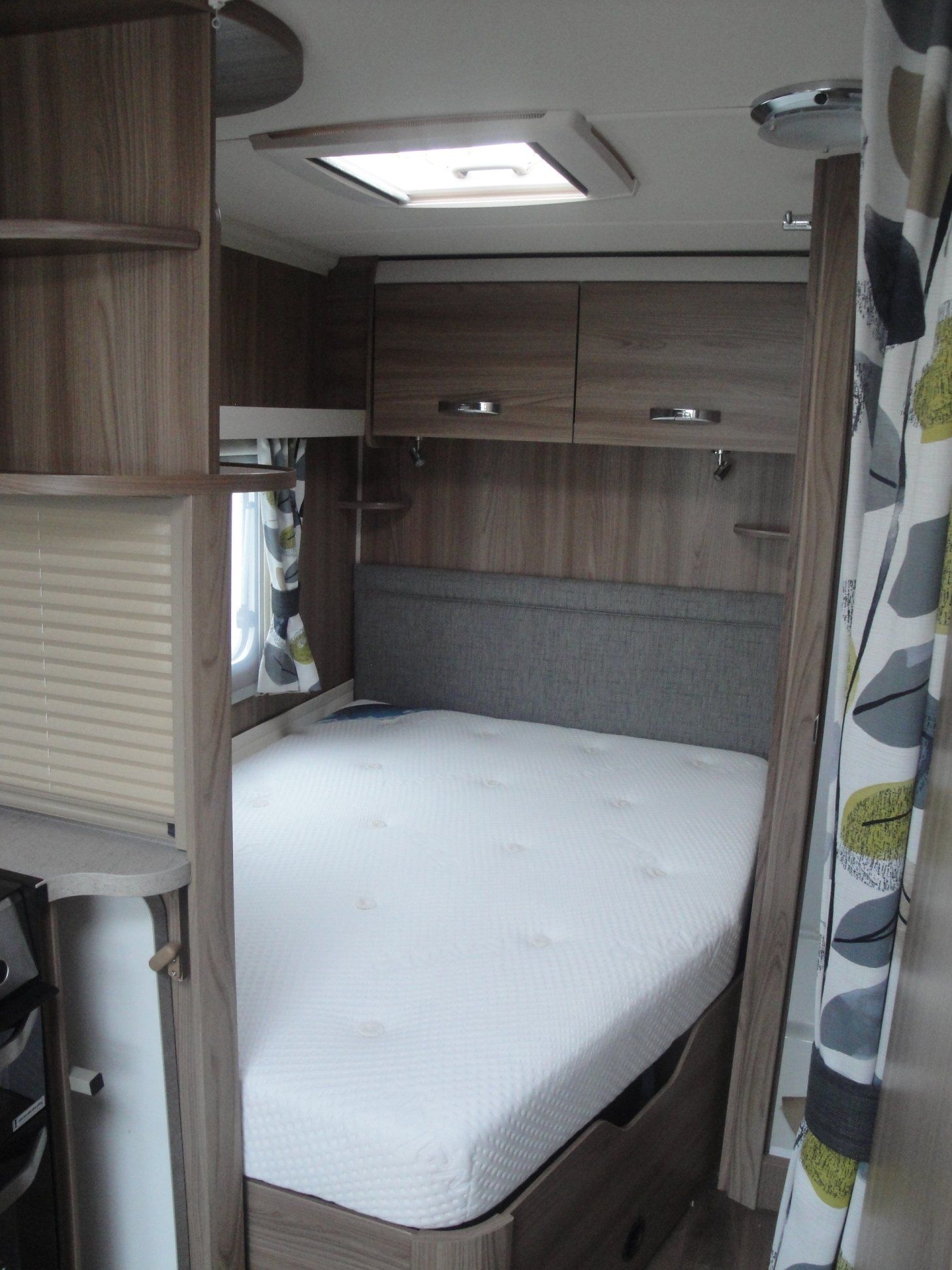 - Fixed bed, storage underneath, vanity unit