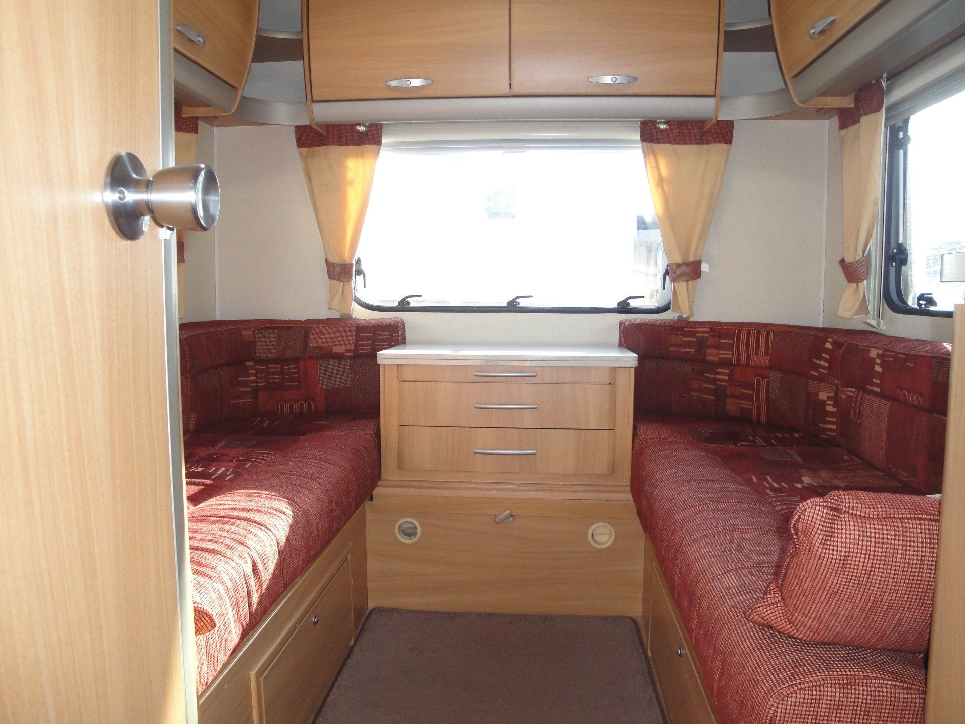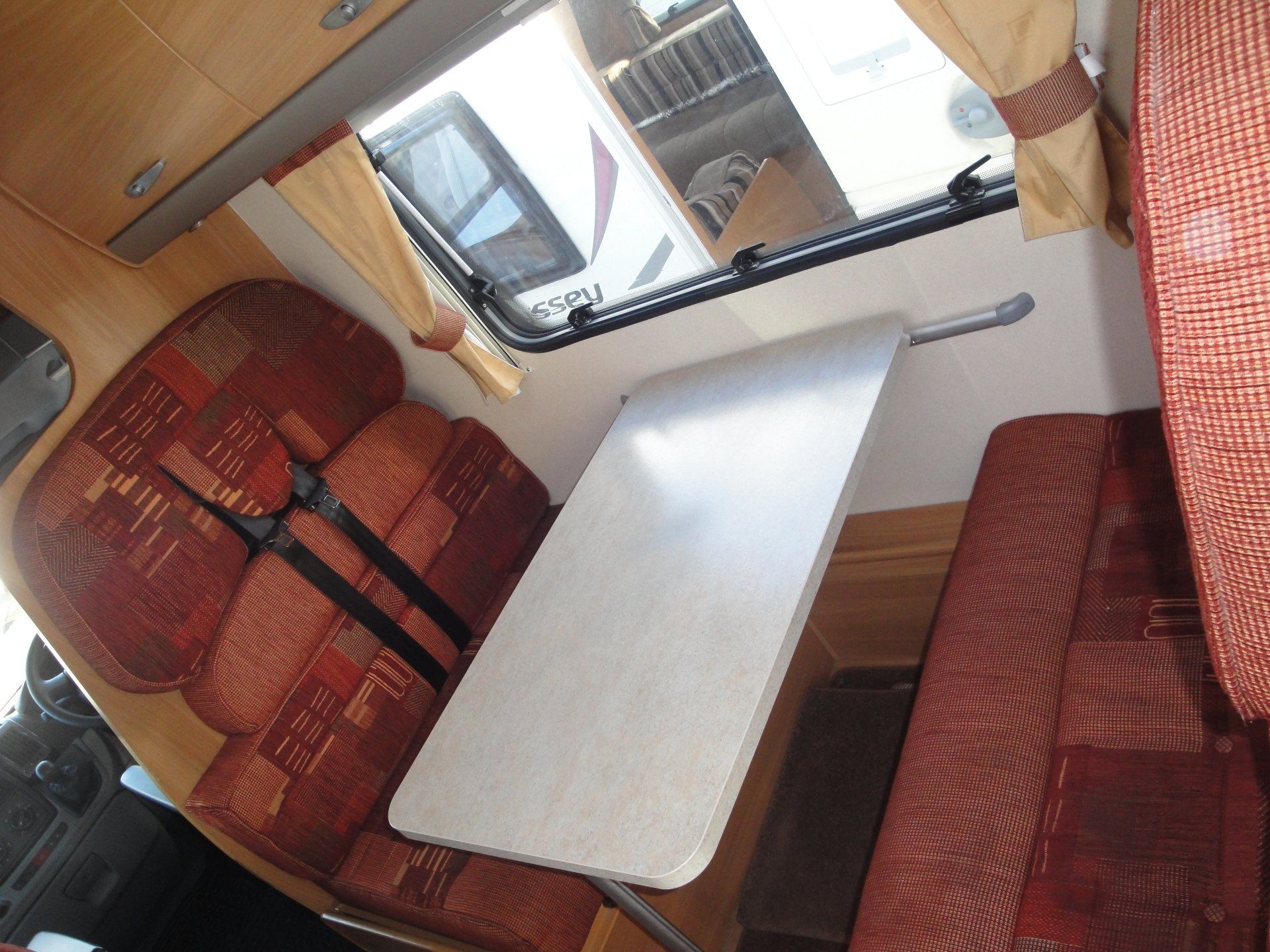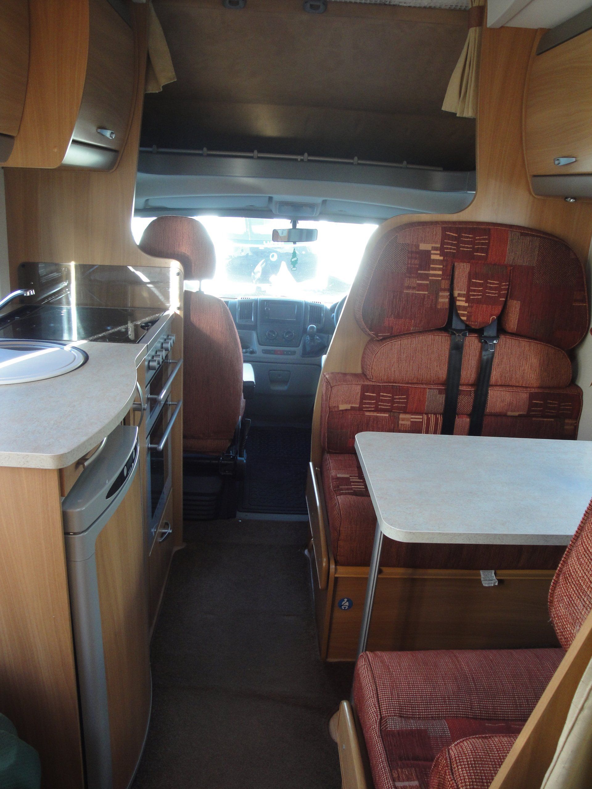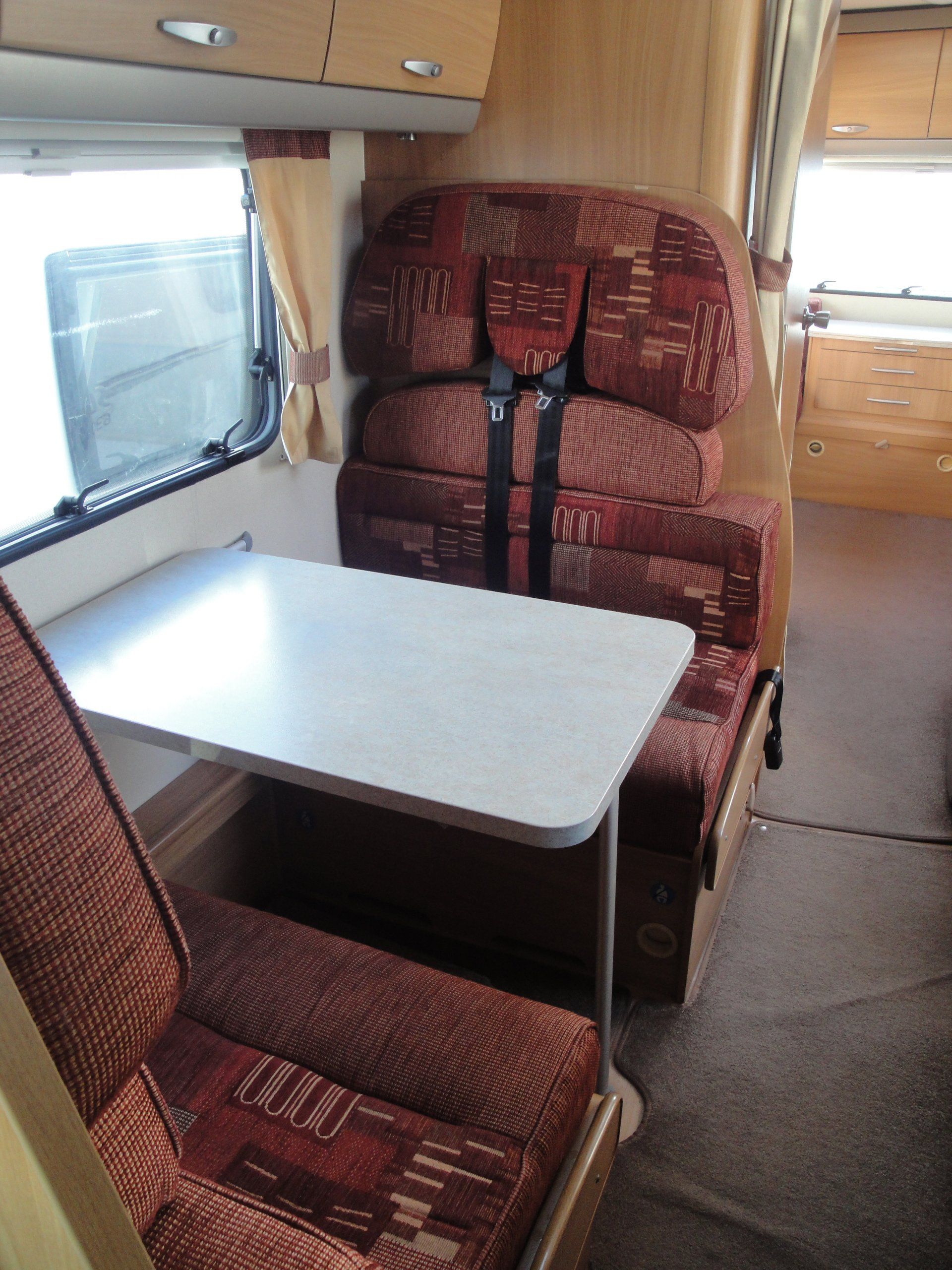 - Four travelling seats around table/Double bed